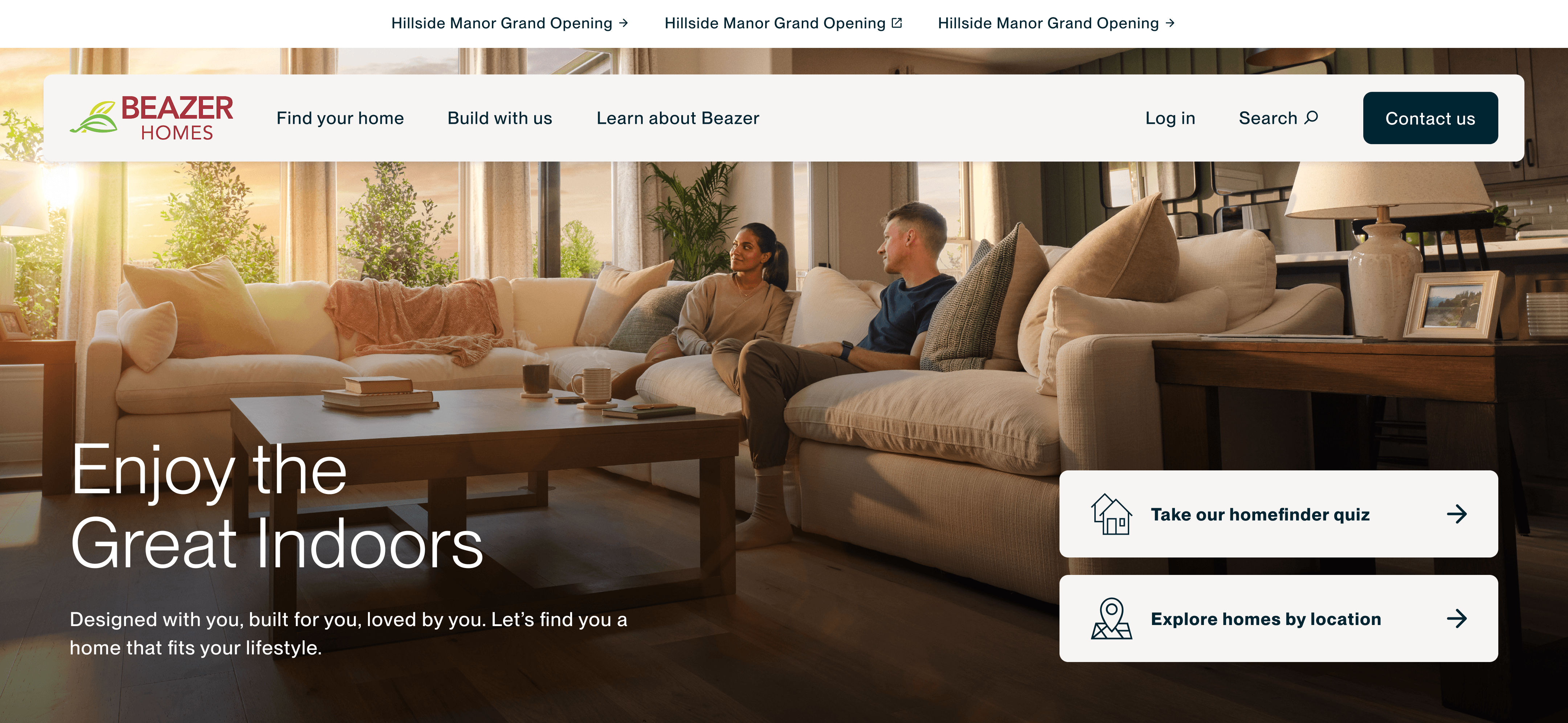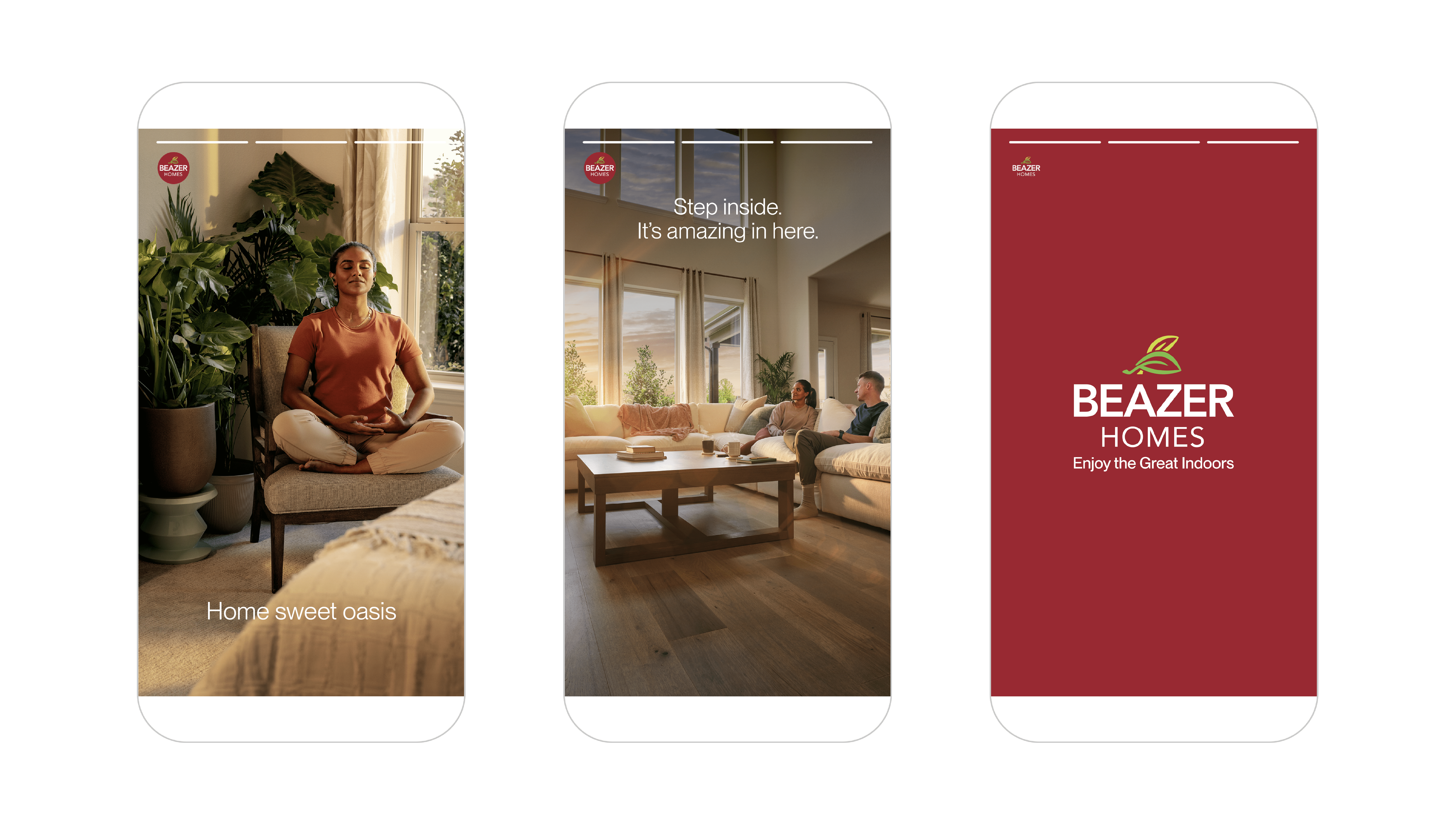 Most homebuilders sell houses the same way: focusing on specs, square footage, and features — often paired with generic stock photography and transactional messaging. But Beazer Homes offered something far more meaningful: thoughtfully designed, energy-efficient homes built to improve everyday living. Working with OBERLAND, we repositioned the brand around the experience of life inside the home. Instead of focusing on what goes into a house, we built a creative platform around what comes out of it — comfort, healthier air, temperature control, flexibility, and peace of mind. The campaign, “Enjoy the Great Indoors,” introduced a new brand voice and visual system designed to feel warmer, more human, and more lifestyle-driven than the category norm. We developed a new photography library and marketing ecosystem that brought the idea to life across digital, advertising, and sales materials — shifting the conversation from construction specs to the feeling of home. The result was a more distinctive and emotionally resonant brand, positioning Beazer as a modern homebuilder centered on comfort, sustainability, and everyday living.